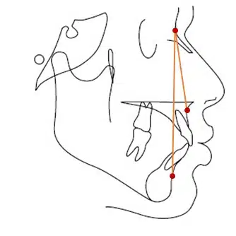 متوسط این زاویه 2±2 درجه است. زوایای بیشر از محدوده نرمال نشان دهنده تمایل اسکلتی کلاس دو و زوایاو کمتر نشان دهنده تمایل اسکلتی کلاس سه می باشد.