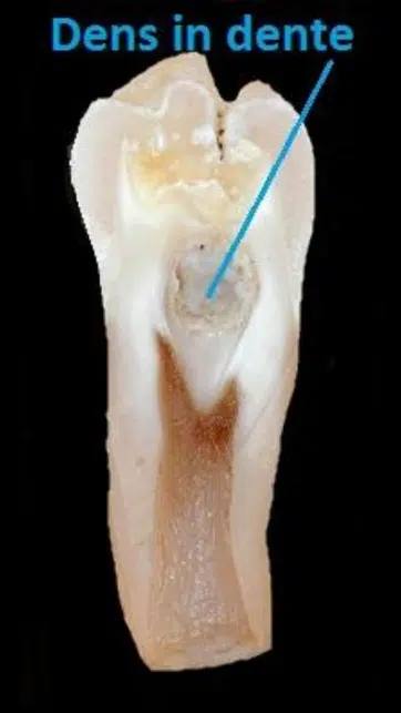 نقصی تکاملی در تشکیل دندان که در نتیجه ی چین خوردن اپیتلیوم تشکیل دهنده ی تاج دندان به داخل فضای پالپی ایجاد می شود. پس از معدنی شدن ، در نتیجه ی این چین خوردگی ، داخل فضای پالپی عاج و مینا خواهیم داشت که نمای رادیوگرافیک آن مانند حضور یک دندان کوچک داخل دندان است.